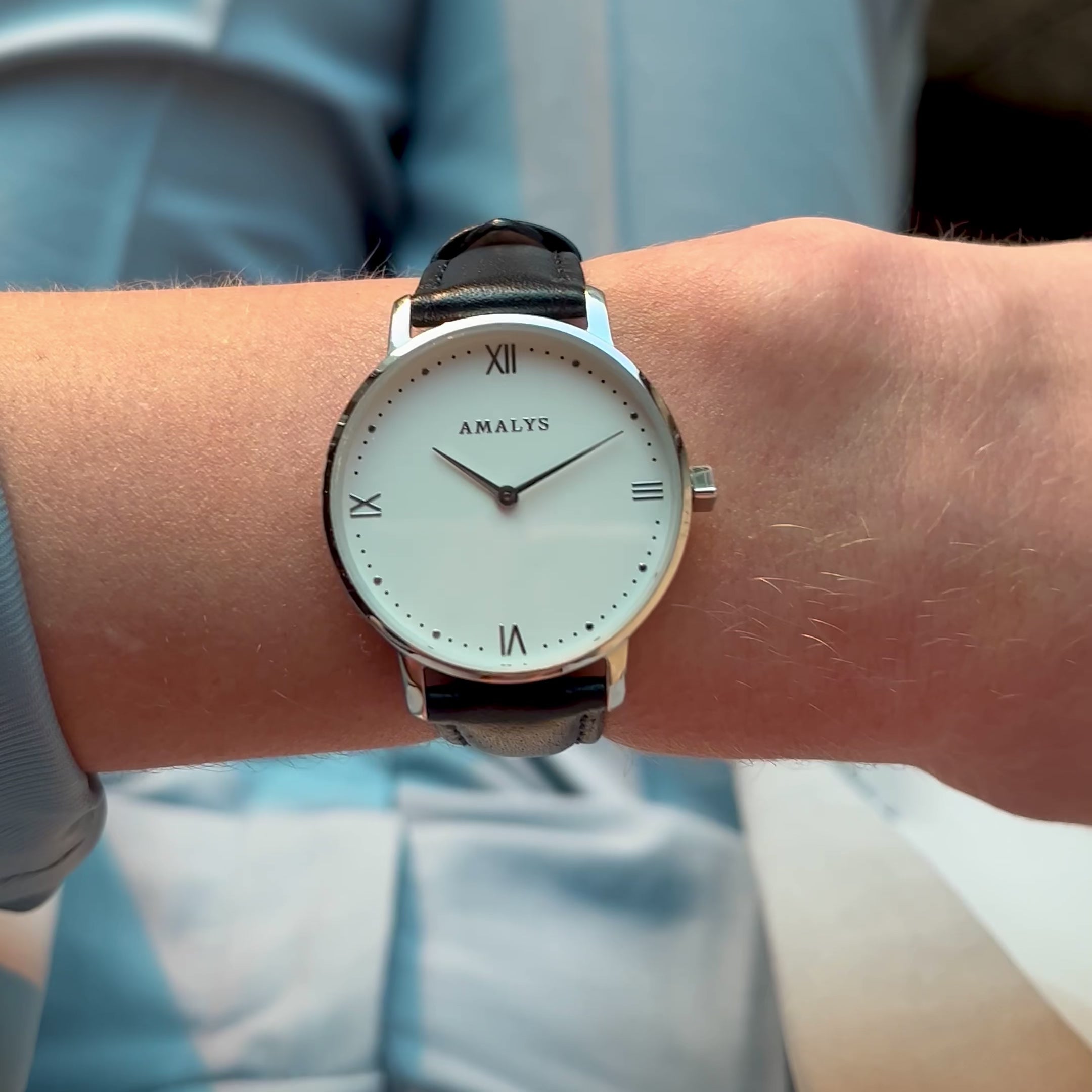 Astrid, avec son cadran blanc neige dans un boîtier argenté et son bracelet bleu marine, apportera une touche de fraîcheur à chacun de vos looks. Associez-la à l'un de nos bracelets facilement interchangeables !