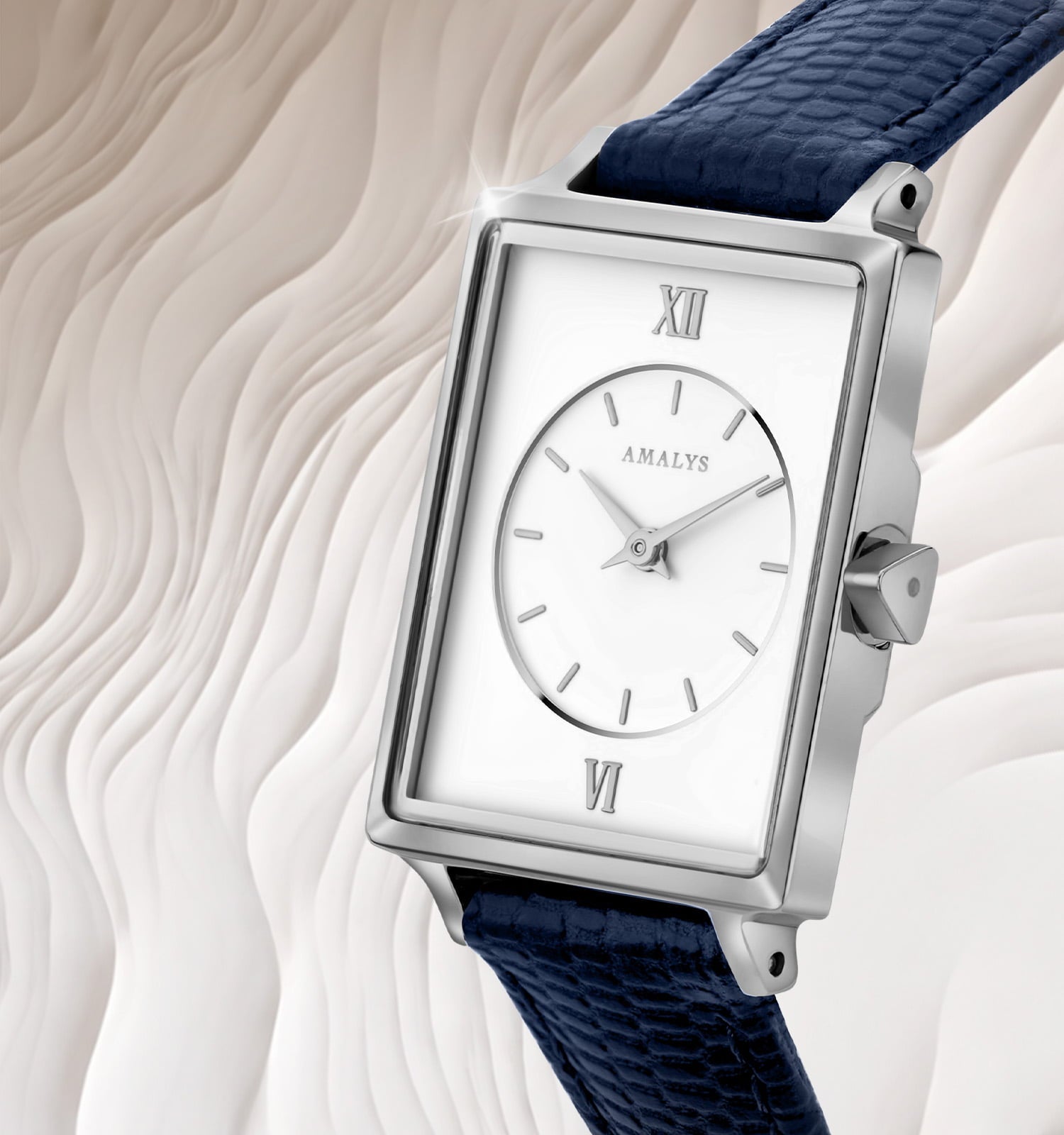 Chaque montre AMALYS est dotée d’un verre saphir sélectionné pour sa transparence exceptionnelle et sa résistance inégalée aux chocs et aux rayures.