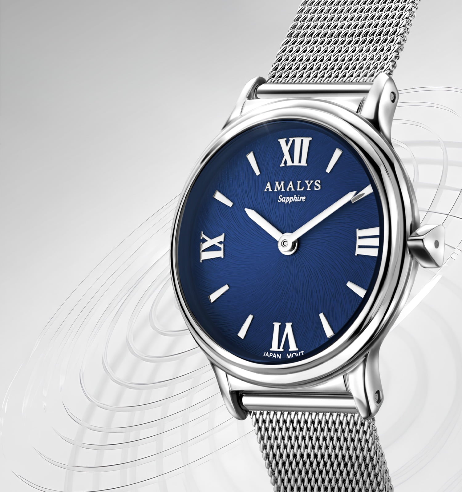 Elk AMALYS-horloge is voorzien van saffierglas dat is geselecteerd vanwege zijn uitzonderlijke transparantie en ongeëvenaarde weerstand tegen schokken en krassen.
