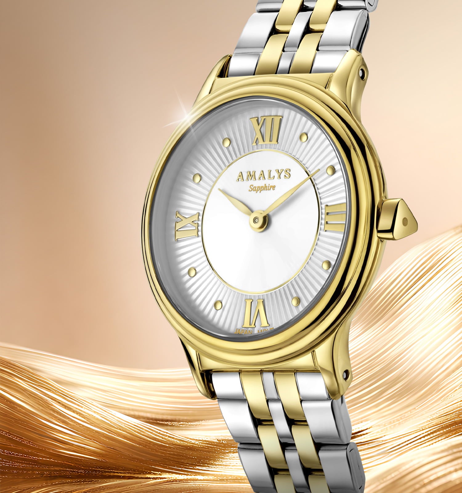 Hethorloge AmalysmodelSuzybelichaamt een eigentijdse visie opdameshorloges, waarin elegantie en moderniteit samenkomen. Dit ronde horloge met eenchique en minimalistischdesign onderscheidt zich door zijn gouden kast van316L roestvrij staal, met zachte en perfect uitgebalanceerde lijnen. Suzy is ontworpen als een verfijndmodeaccessoireen past subtiel en zelfverzekerd bij elke outfit, waardoor het een ideaalhorloge voor dagelijks gebruikis met een uitgesproken stijl. Dit echtedesignerjuwel verfraait de pols met een natuurlijke en duurzame elegantie.