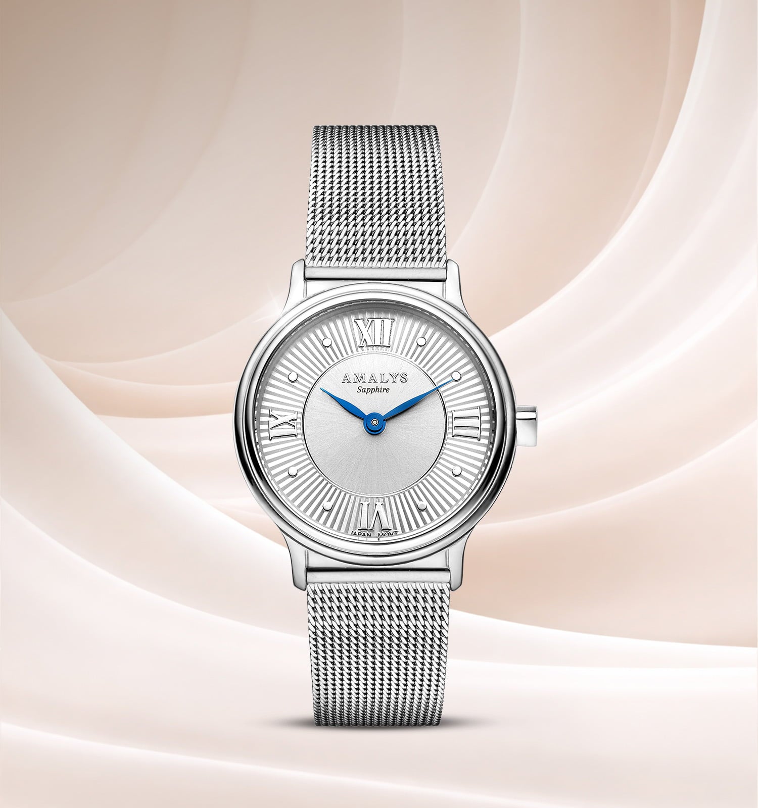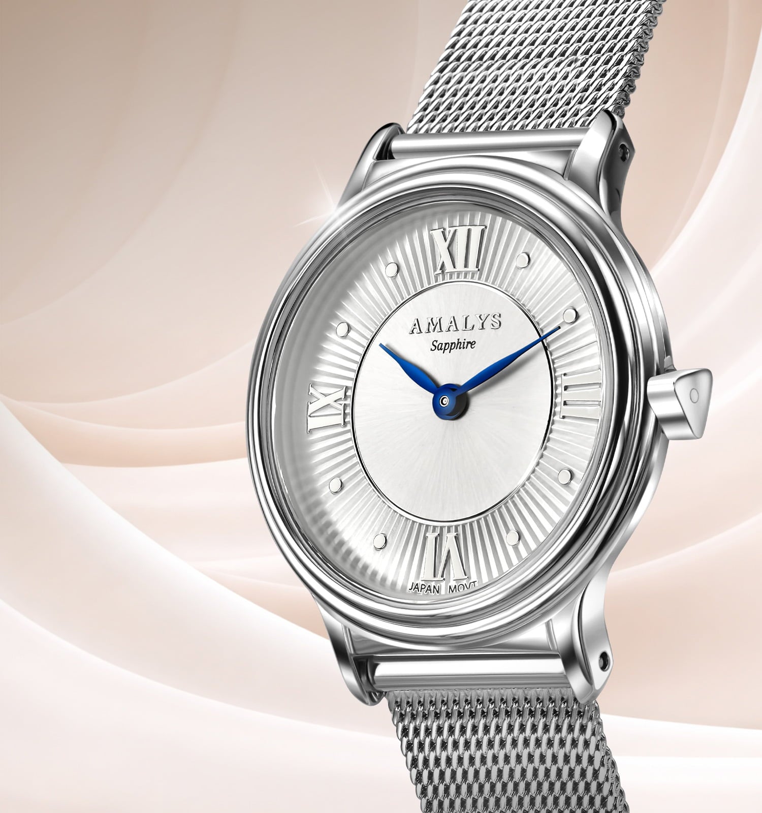 Silver stalen kast, fijn bewerkte wijzerplaat en geblauwde wijzers, gecombineerd met een delicate Milanese schakelband. Violette biedt een evenwichtig ontwerp voor een discrete en zelfverzekerde uitstraling.