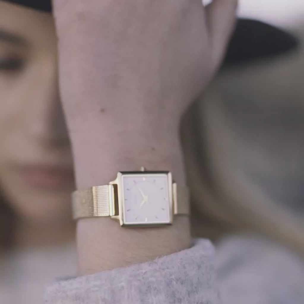 Système de bracelets interchangeables ingénieux, permet d'avoir 2 montres en une. Le cadran carré convient aux petits poignets.